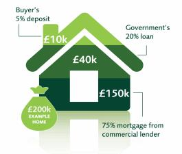 The scheme works by offering potential buyers a government backed equity loan up to the value of 20% of the purchase value of a new build property. The buyer must have at least 5% to put down as a deposit and meet the affordability criteria to receive the equity loan. A mortgage is required to cover the rest of the purchase - 75% of the value of the property if the full 20% equity loan is taken. A major benefit of this arrangement is that the rates of interest charged at 75% LTV are significantly better than those available at 95% so the monthly mortgage payment will be lower.